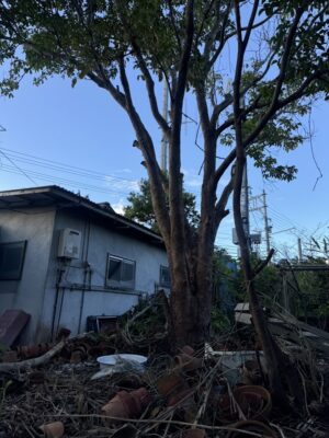 生い茂っている木を切り、